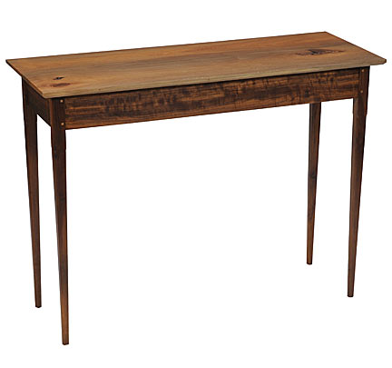 Shown in natural wood finish. Sinker cypress top with sinker cypress pegs. Peruvian walnut base with mortise and tenon joinery. .