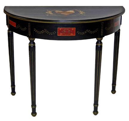 Shown in Lamp Black with accents of Olive. Rooster R-07 with sunflowers, classical medallion and laurel leaf swags.