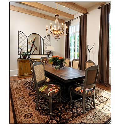 (90"L x 40"W x 30"H, F0328) Umbrian table is painted in Lamp Black with accents of Black Walnut Base and Rapunzel. Copper top is hand aged with all natural ingredients. |