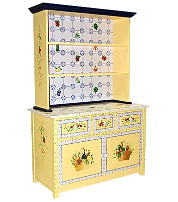 Shown in Light Yellow with accents of Royal Blue, vegetable and fruit tilework.
