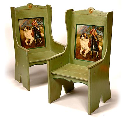 Shown in Iron Green with accents of Pansy and Light Yellow. SC-42 features a young girl with her St. Bernard.