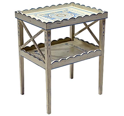 Shown in Sapphire White with accents of Roasted Chestnut and Daphne Liner. Classical design painted in Daphne.