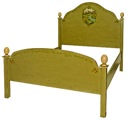 Shown in Moss with accents of Liner Red and Safari Tan. Bed features A-32 medallion on headboard with swags of pine boughs and pine cones.