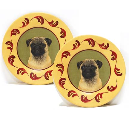 Shown in Wheat with accents of Moss and Glazed Red. Plates feature Pug medallions.