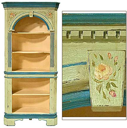Painted in Pistachio with accents of Charcoal and Sea Blue. Interior is painted Peaches & Cream.