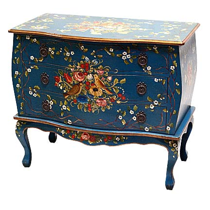 Painted in Teal with accents of Charcoal, Liner Red and Aged Gold. Chest features the Italian bird design with bronze hardware.