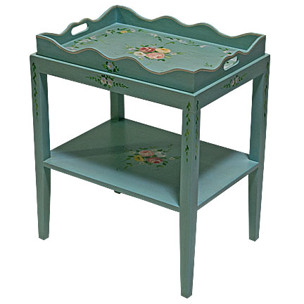 Painted in French Gray Blue with Venetians, florals and filigree.