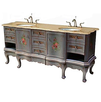 Painted in a custom Periwinkle Finish created to coordinate with antique wallpaper. Design features F-76 motif painted to coordinate with antique wallpaper.
