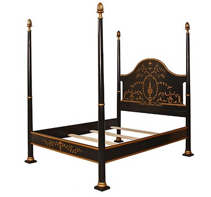 Bed is painted Lamp Black with aged gold classical design and detail.