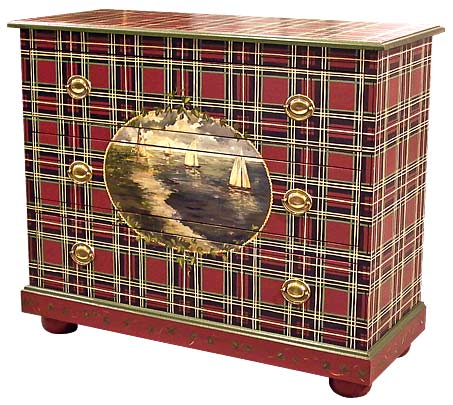 Stewart Plaid with Raspberry Base and Nautical scene.