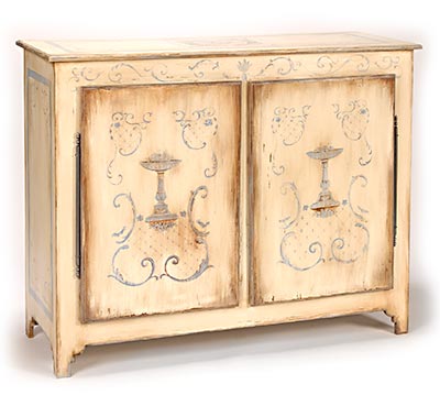Coffehouse Tan wax white with accents of Daphne. Classical filigree and aged iron hardware.