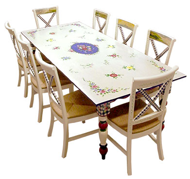 White with Royal Blue, Rasberry lining, Floral Medallion with scattered Florals.