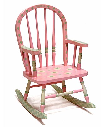 Shown in Petal Pink with Pistachio diagonal gingham arms and rockers. Bow back features Pistachio diamonds and the name. Seat features White and Pistachio circles.