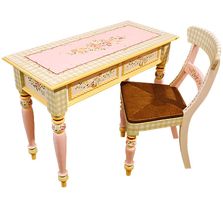 White with Beatrice Bed Green Gingham. Accents of Little Pink and Victorian Pink with Florals.