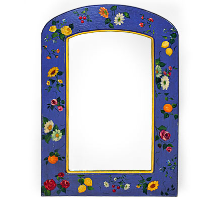 Shown in Gingham Blue with scattered fruits and flowers and accents of Light Yellow.