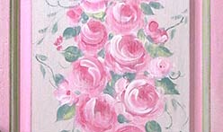 Aged Petal Pink with accennts of Beatrice Green and T.C. Green. Trellis design with roses.