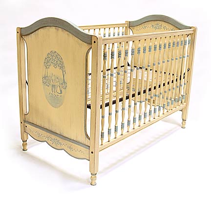Shown in Aged Crème Finish with French Gray Blue Bunny Toile