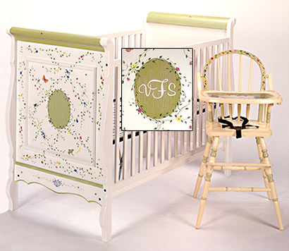 with Eggshell Green accents, bunny and duck scene laced with florals