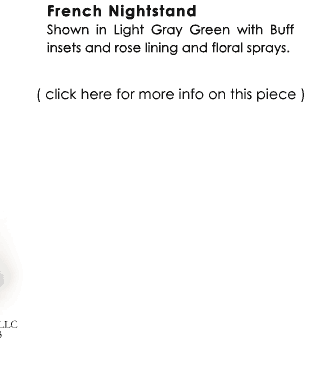 French Nightstand-Light Gray Green with Buff insets and Rose lining and floral sprays