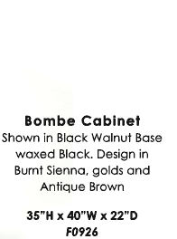 Bombe Cabinet-Black Walnut Base waxed Black. Design in Burnt Sienna, golds and antique brown