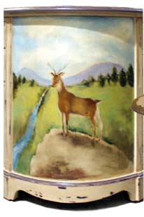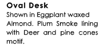 Oval Desk-Eggplant waxed Almond. Plum Smoke lining with deer and pine cones motif