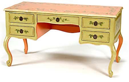 Caramel wax Light Green; Vanilla Liner: Tomato Soup on leg interior and top. Twig Border with Strawberries.