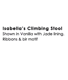 Isabella's Climbing Stool-Vanilla with Jade lining. Ribbons and bird motif